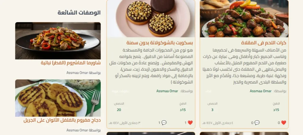 تم بناء هذه المنصة لتكون متجاوبة بالكامل، حيث توفر واجهة استخدام سريعة وواضحة تركز على متعة “التصفح” و “التفاعل” المجتمعي حول الوصفات.